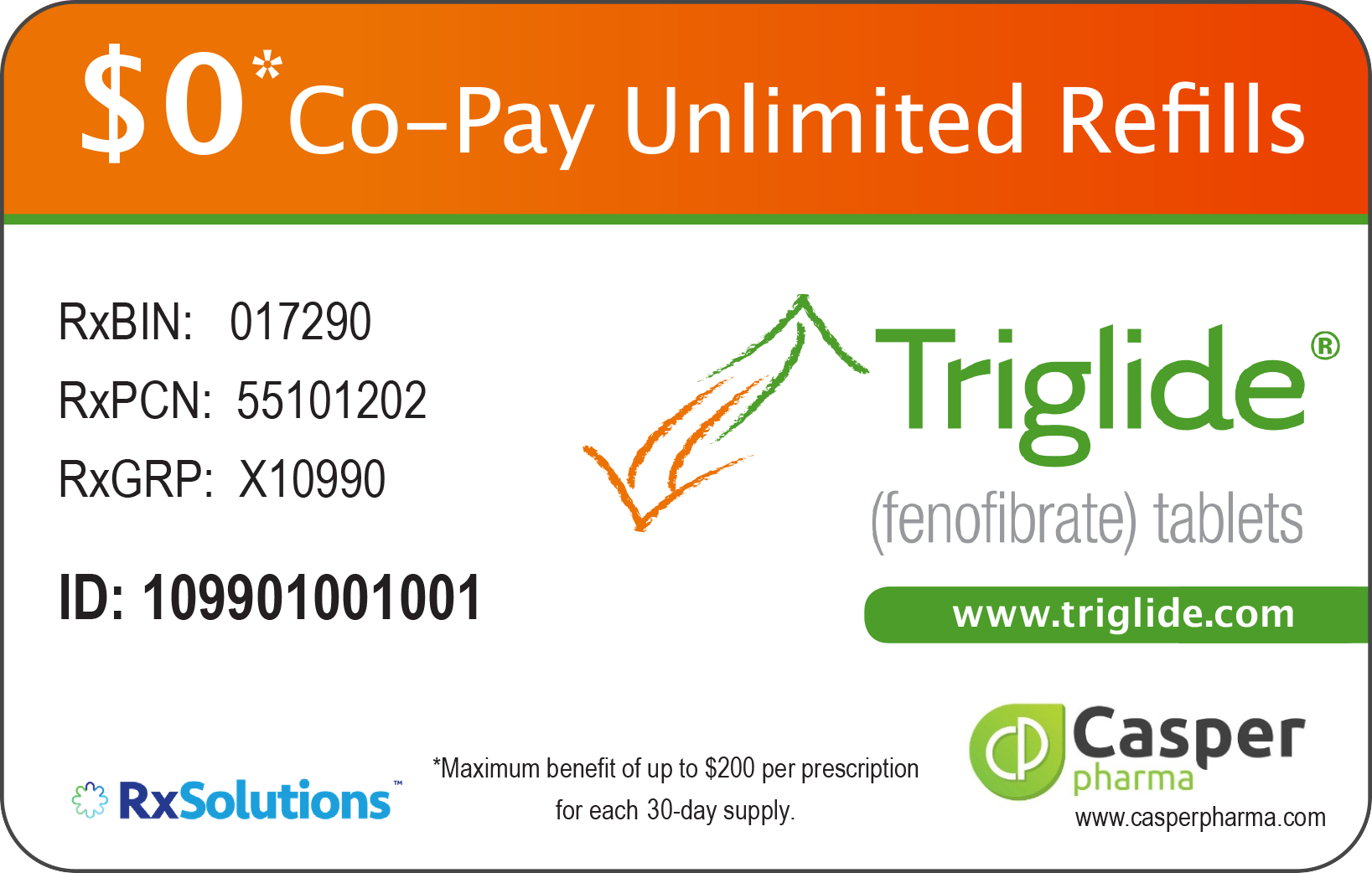 Patients: Download card to pay no more than $0 with a maximum savings of $200 per prescription for each 30-day supply. Not valid without prescription from your physician.