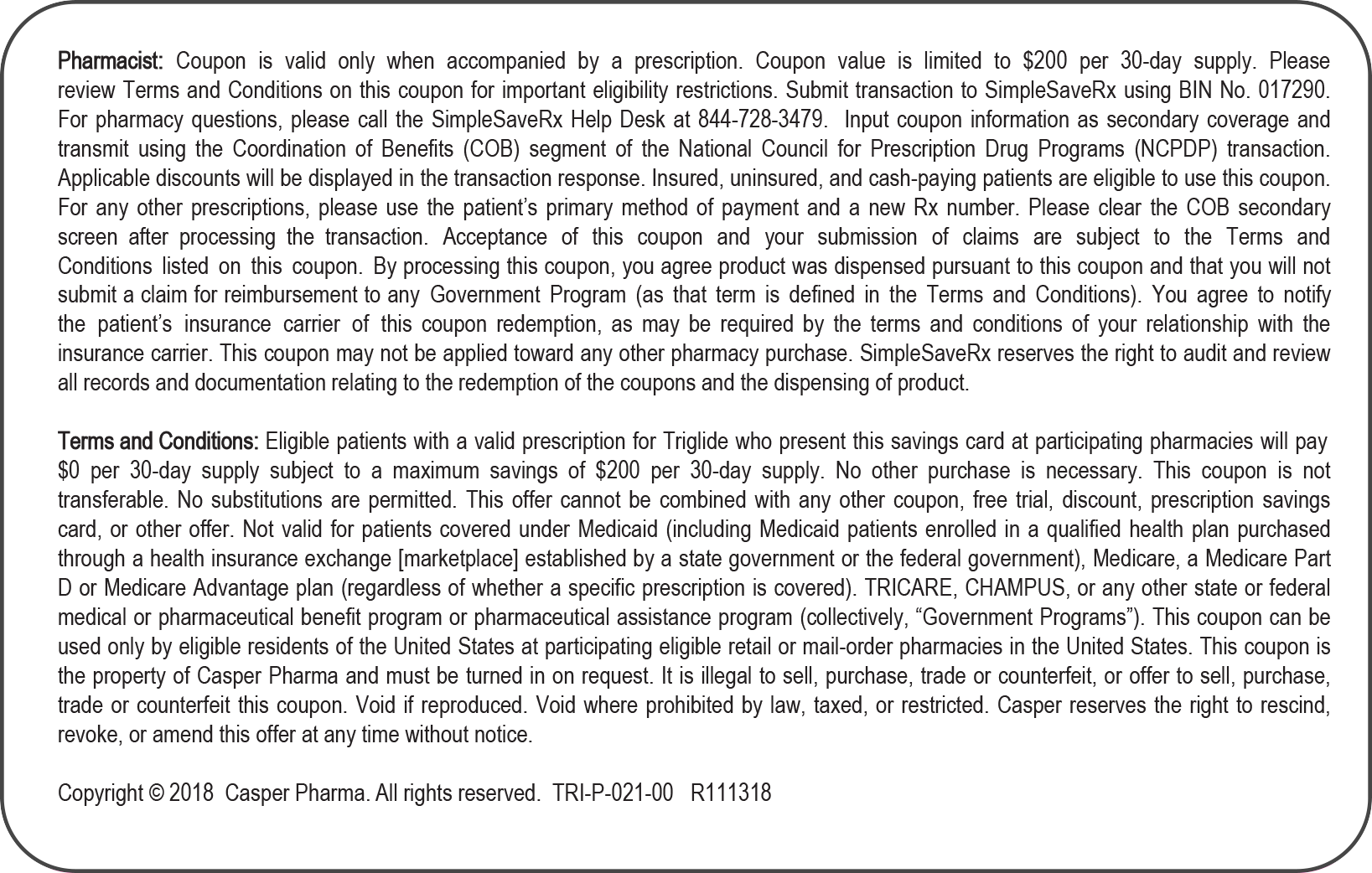 Physicians and Pharmacists: Download card as-needed to provide to your patients. Each eligible patient will pay no more than $0 with a maximum savings of $200 per prescription for each 30-day supply.